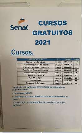 SENAC abre inscrições para diversos cursos Aluns GRÁTIS- Leia mais – Saiba como se inscrever…