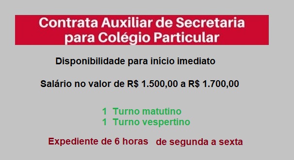 Empresa com nome confidencial. Contrata-se em caráter de URGÊNCIA Auxiliar Escolar para trabalhar na Secretária de Colégio Particular. Busca-se identificar[…]
