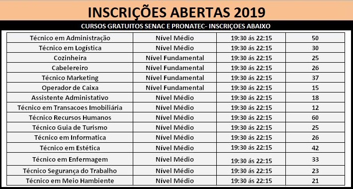 Ao jovem que deseja estudar e não tem condições de arcar com as mensalidades pode contar com o PRONATEC 2019 SENAC.[…]