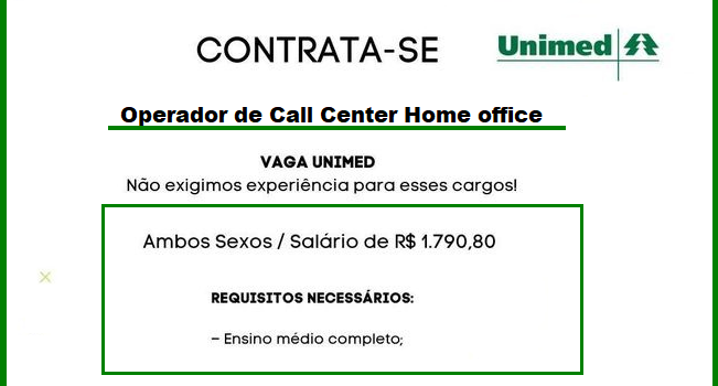 Vaga para Operador de Call Center Home office Perfil desejado: Ensino médio; Conhecimento das ferramentas do pacote Office; Disponibilidade de[…]