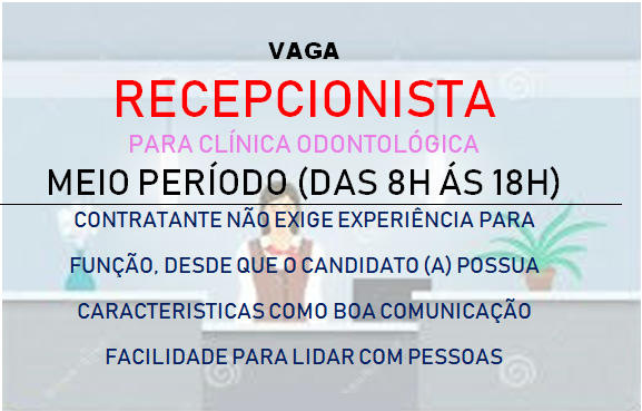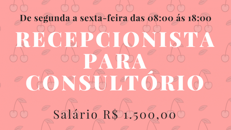 Segmento da empresa: Clínica Médica Atividades a serem desenvolvidas: Atendimento telefônico; Atendimento ao público; Recepcionar os pacientes; Assistência ao Consultório[…]