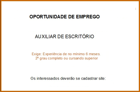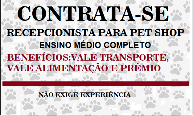 Contrata-se funcionária para trabalhar em consultório odontológico Horário de Trabalho: De segunda a sexta-feira das 08:00 ás 18:00 Horário de[…]